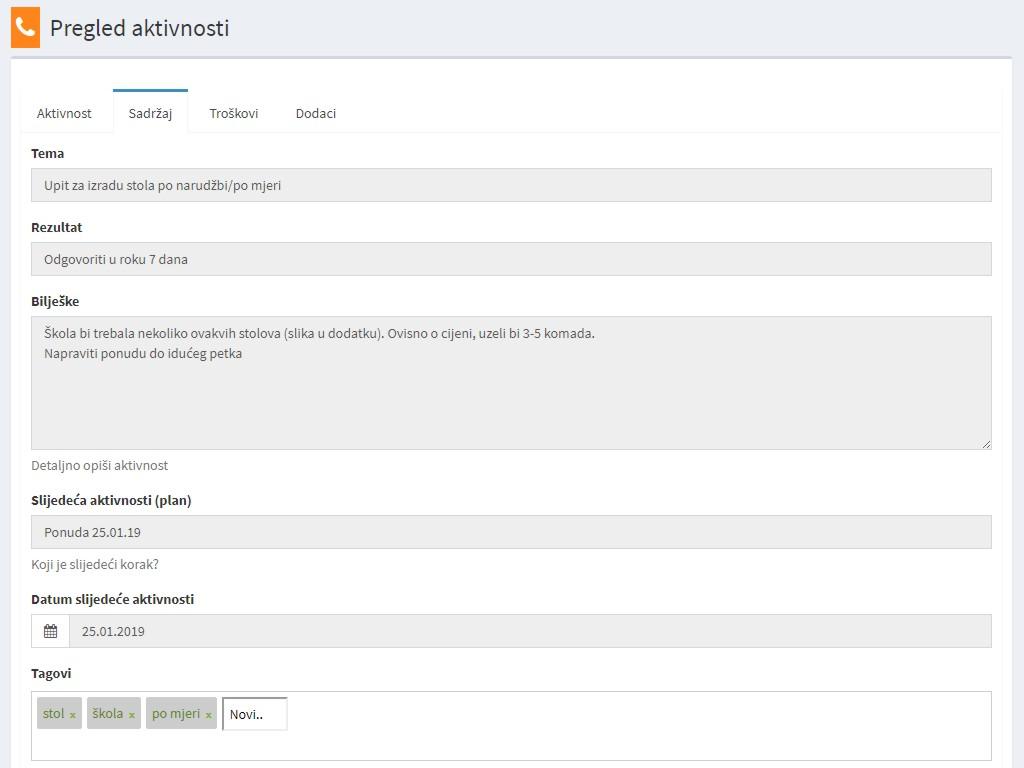 s vremenom ovo postaje dragocjeni rudnik informacija o svim detaljima poslovnog odnosa s pojedinim partnerima (kada ste i o čemu s kime razgovarali i pregovarali, koje cijene i uvjeti su bili u igri i sl.)